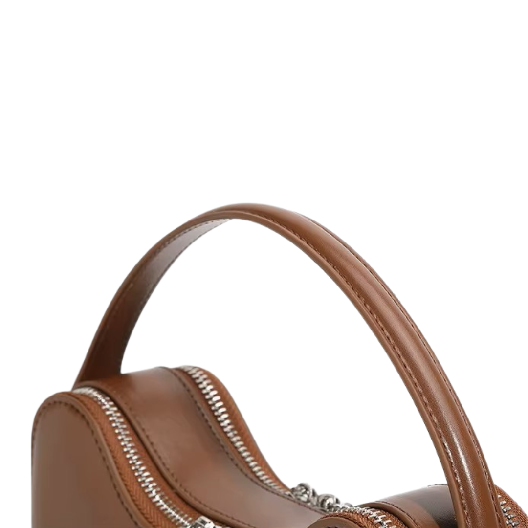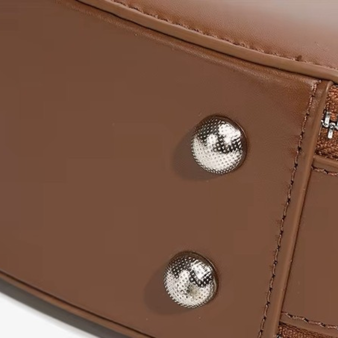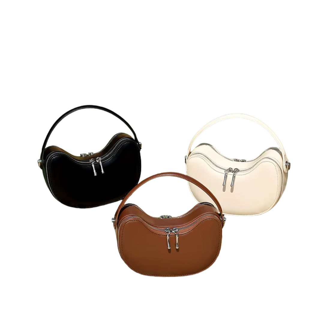 Haar ronde, stevige vorm doet denken aan een oesterschelp – krachtig van buiten, gevoelig van binnen. Thaléa is een tas voor vrouwen die zich durven ontvouwen, steeds opnieuw. Ze belichaamt ritme, diepte en innerlijke groei.